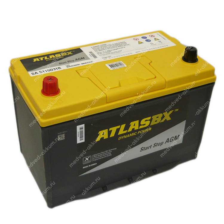 Аккумуляторы ATLAS ABX AGM произведены по технологии AGM (Absorbent Glass Mat). AGM-батареи имеют полностью герметичный корпус, а жидкий электролит абсорбирован в сепараторах из микроволокнистого стекловолокна, плотно запрессованных между пластинами, что обеспечивает надежное удержание электролита. Благодаря этому ускоряются реакции взаимодействия между кислотой электролита и материалом пластин, снижается внутреннее сопротивление батареи, повышается механическая прочность конструкции, предотвращается расслоение электролита. AGM-батареи имеют совершенно уникальные эксплуатационные свойства: выдерживают в 3-4 раза большее число циклов разряда-заряда, чем обычные свинцово-кислотные стартерные батареи; способны выдерживать более глубокие разряды, то есть без участия генератора способны снабжать электропитанием более энергоемкие системы автомобиля; принимают заряд в два-три раза быстрее, т.е. после разряда быстрее заряжаются до 100%.