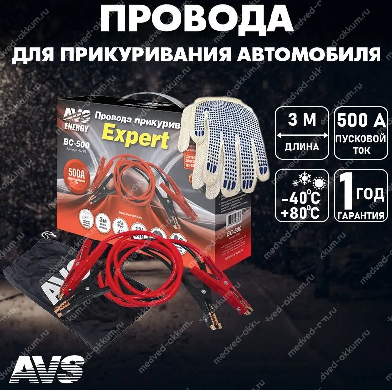 Провода для прикуривания 500А (3М) AVS Expert BC-500