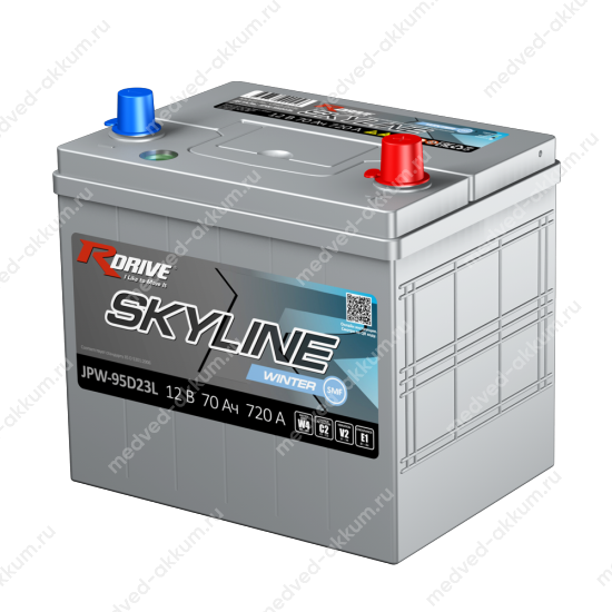 Автомобильные аккумуляторные батареи RDrive SKYLINE разработаны с учетом конструктивных особенностей японских автомобилей и полностью соответствуют требованиям японского стандарта JIS D 5301:2006. Батареи RDrive отличаются от большинства стоковых версий батарей, устанавливаемых на конвейерах, улучшенной виброустойчивостью, повышенной производительностью и, как следствие, более продолжительным сроком службы. Аккумуляторы RDrive SKYLINE модификации WINTER SMF предназначены для эксплуатации в условиях холодного климата северных регионов Сибири и Дальнего Востока.